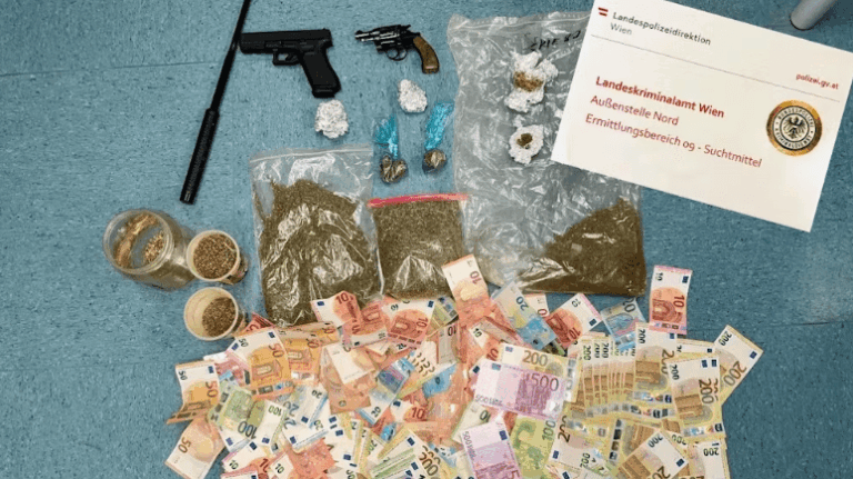 UTKAN HABER (Viyana) – Viyana’nın Brigittenau bölgesinde, uzun süredir devam eden yoğun soruşturmaların ardından, 29 yaşındaki bir Viyanalı uyuşturucu satıcısı olarak tespit edilerek evinde gözaltına alındı. Viyana Kriminal Polis Teşkilatı’nın Kuzey Şubesi tarafından gerçekleştirilen operasyonda, şüphelinin dairesinde yapılan aramada 435 gram esrar, 24.020 Euro nakit para, iki başlangıç tabancası ve yasaklanmış bir sopa ele geçirildi.