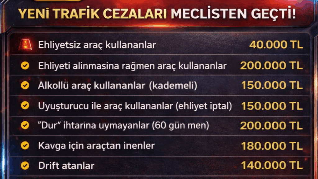 YENİ TRAFİK CEZALARI MECLİSTEN GEÇTİ!
