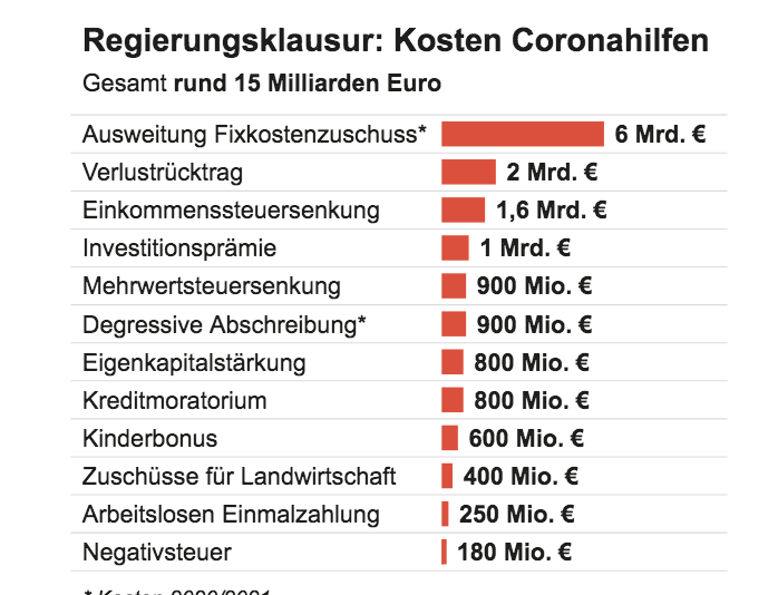 ÖVP ve Yeşiller koalisyon hükümetinin uzlaştığı destek paketine göre işsizlere 450 Euro, Çocuk başınada 360 Euro bonus yardım verilecek.