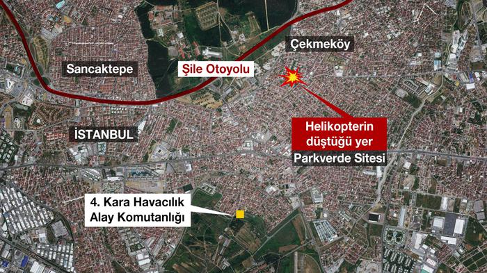 İstanbul Çekmeköy’de bir site içerisine askeri helikopter düştü. Olay yerine gelerek açıklama yapan İstanbul Valisi Ali Yerlikaya helikopterde bulunan 4 askerimizin şehit olduğunu açıkladı. Kazayla ilgili soruşturma başlatılırken, Milli Savunma Bakanlığı yaptığı açıklamada “Kazada 4 kahraman silah arkadaşımız şehit olmuştur. Olayla ilgili inceleme başlatılmıştır” denildi.