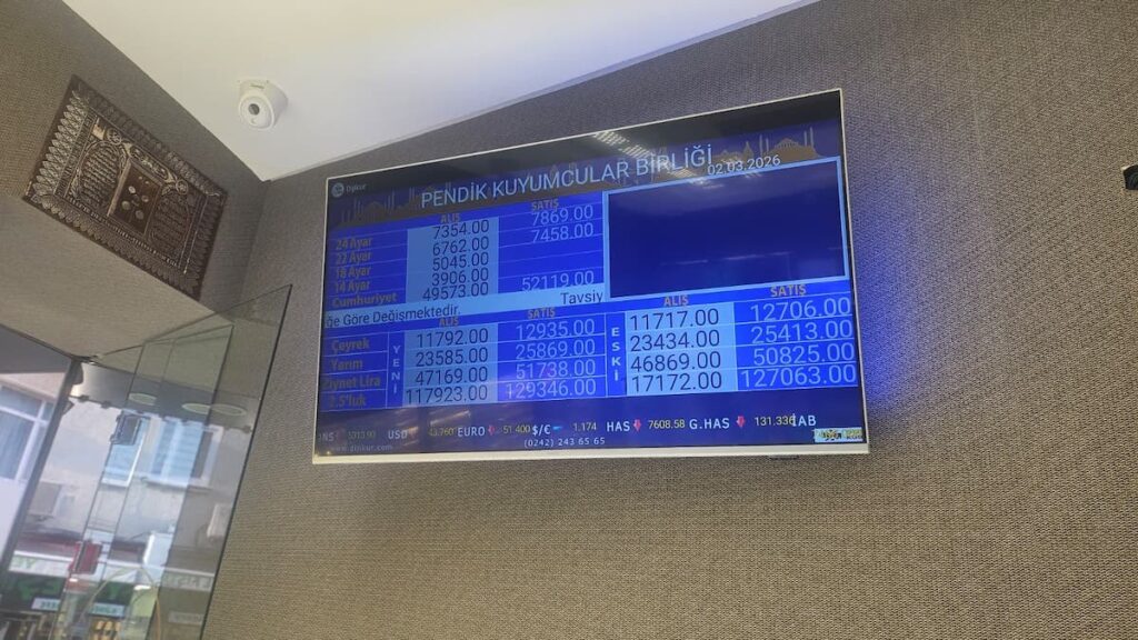 Pendik’te kuyumculara yansıyan fiyatların gün içinde değişebileceği belirtilirken, alım-satım yapacak vatandaşların işlem öncesi anlık fiyat teyidi almaları öneriliyor.