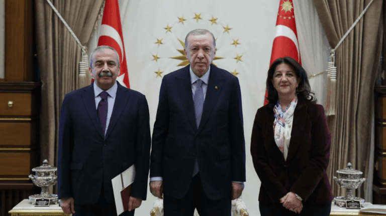 Cumhurbaşkanı Recep Tayyip Erdoğan, DEM Parti heyetini Cumhurbaşkanlığı Külliyesi’nde kabul etti. Heyette, DEM Parti İstanbul Milletvekili Sırrı Süreyya Önder ve Van Milletvekili Pervin Buldan yer aldı.