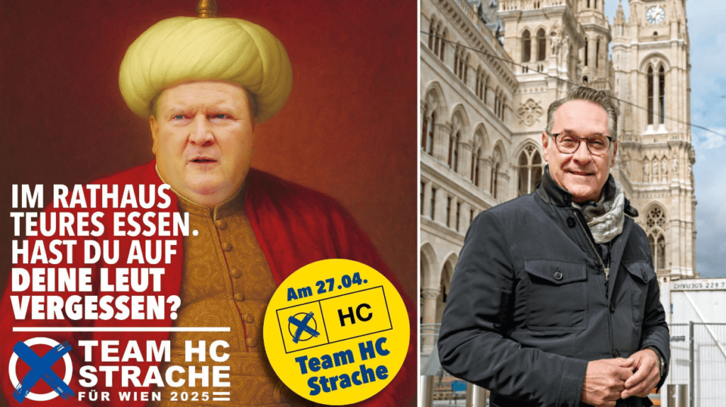 Sosyal medyada paylaştığı afişte, Viyana Eyalet Başkanı Michael Ludwig’i Osmanlı padişahı kıyafetleri içinde tasvir eden Strache, “Belediye binasında lüks yemekler. Halkını unuttun mu?” ifadeleriyle sert bir eleştiri yöneltti. Afişte yer alan bir diğer çağrı ise “Paramız kendi insanımız için” sloganıyla Strache’nin popülist söylemlerini sürdürdüğünü gösteriyor.